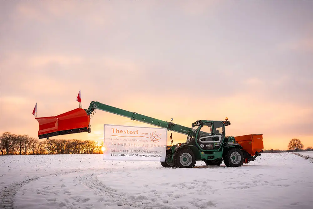 Thestorf GmbH steht als zertifizierter Betrieb für eine verantwortungsvolle und effektive Schneeräumung und Eisbekämpfung. Wir sind Ihr zuverlässiger Partner, wenn es darum geht, die Anforderungen des Winters zu meistern. Kontaktieren Sie uns, um mehr über unsere Winterdienstleistungen zu erfahren und wie wir Ihnen helfen können, sicher durch die kalte Jahreszeit zu kommen.